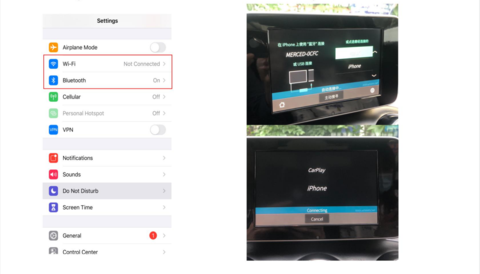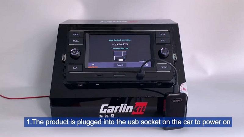 Nadat je het apparaat in de USB-poort van de auto hebt gestoken, zet je Bluetooth en wifi aan. Selecteer vervolgens het Bluetooth-signaal van de...